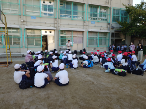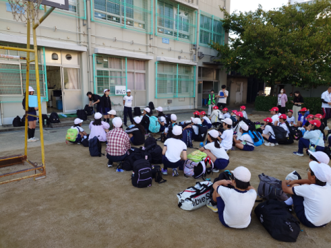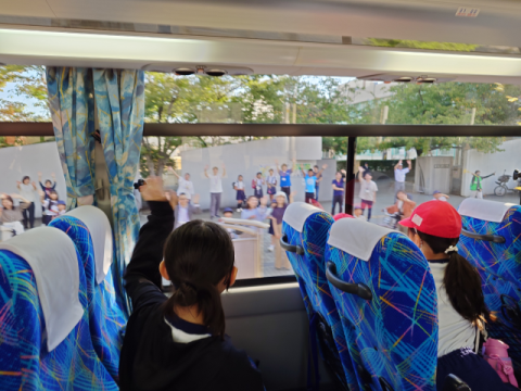 今日から2日間、5年生は宿泊学習です。出発式を終え、バスに乗り込みました。