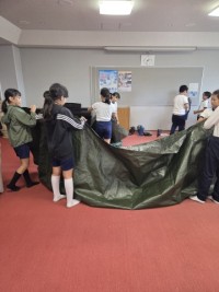 5年生 林間学校 入館式 公開日 2025/10/08 更新日 2025/10/08 5年生 到着後、入館式を行いました。 2日間お世話になる、施設の方にご挨拶をいただきました。きまりを守って、安全な宿泊学習にしましょう。
