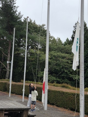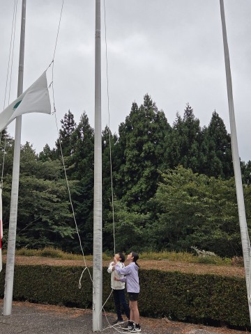 後期児童会役員の、みなさんが旗をあげてくれました。