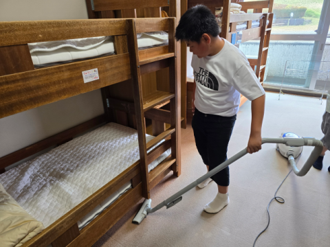 2日間、お世話になった部屋を掃除しました。手分けして協力したおかげで、とてもきれいになりました。