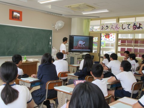 今のUnitで学習している「動物」について,毎日新聞社に勤めているゲストティーチャーからSDGsの観点で色々な話を聞きました。