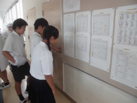 自分の出場種目やどこの学校の児童と当日競技で競うかなどを確認しています。