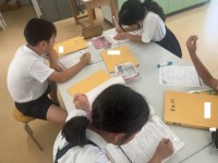 休み時間を使いながら、土曜参観に向けて打ち合わせをしています。真剣な話し合いが続いています。
