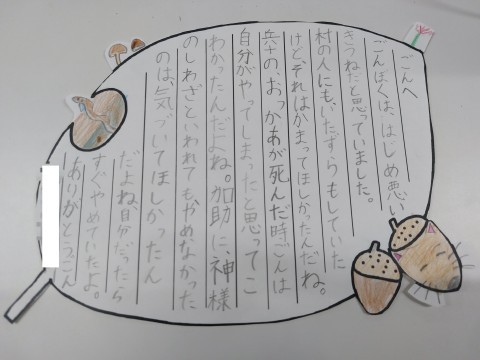 「ごんぎつね」の学習が終わり、ごんか兵十、自分で相手を選んで書いた手紙を交流しました。