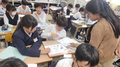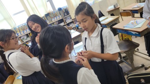 4年生 外国語 公開日 2025/10/28 更新日 2025/10/28 4年生 外国語の学習では、文房具の発音の練習をした後、『Do you have~?』の表現を使い、友だちとカードゲームをしました。 たくさんの人とコミュニケーションをとりながら、自分と同じカードを持っている人を探します!その後もドンじゃんけんをしながら、楽しく表現や発音に親しむことができました♪