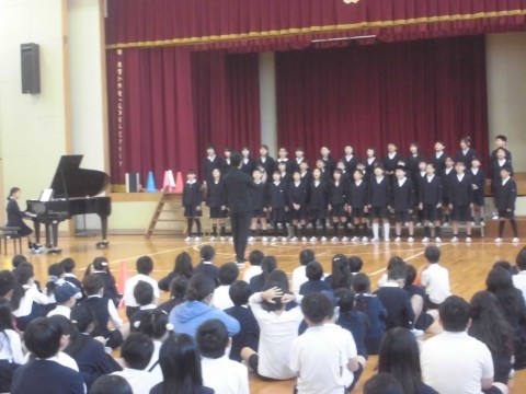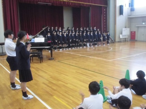 来週木曜日に連合音楽会に出演する5年生のために,「連音を励ます会」で,応援しました!