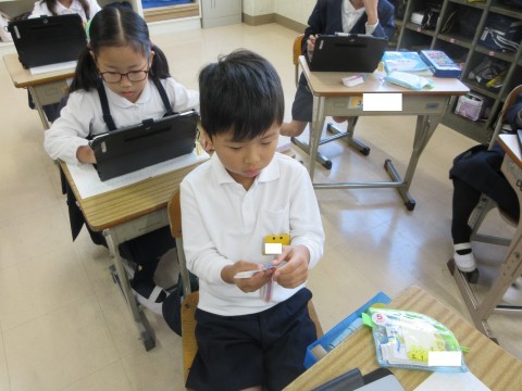 今日は、2の段を覚えるために、九九カードや九九の歌、九九アプリの中から自分で学び方を選んで取り組みました。