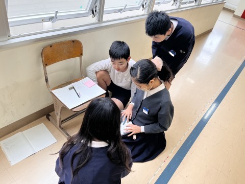 算数の学習で、自分たちの歩幅を調べました。みんなで協力して計測し、平均を使って一歩の歩幅を計算しました。その後にクラスの平均を出し、楽しく学ぶことができました。