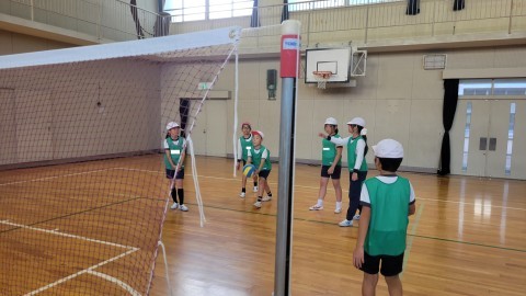 体育ではバウンドCatchバレーの学習が始まりました。