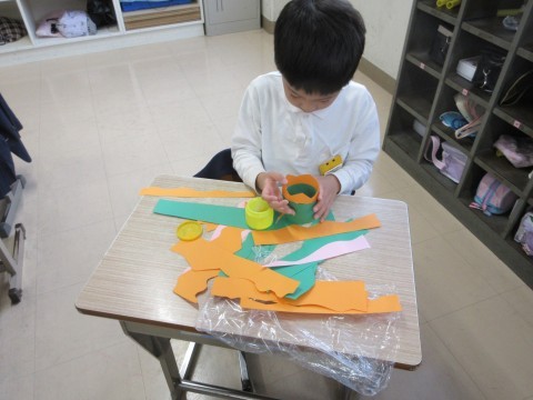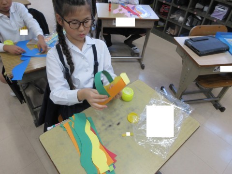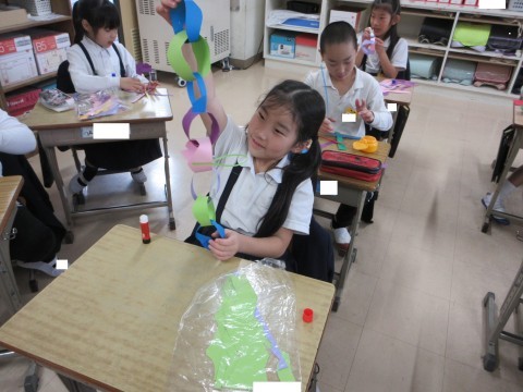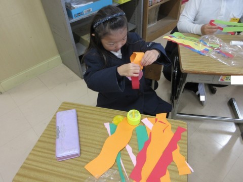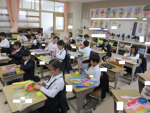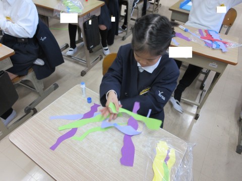 2年生 図工「わくわくカッターナイフ」 公開日 2025/11/12 更新日 2025/11/12 2年生 前回、カッターナイフを使っていろいろな形に切った色画用紙を組み合わせてつなげました。丸めてつなげたり、ねじってつなげたり、思い思いにつなげていきました。「その形おもしろいね!」「それすごい!」「○○に見えてきた!」など、楽しく取り組みました。 +5