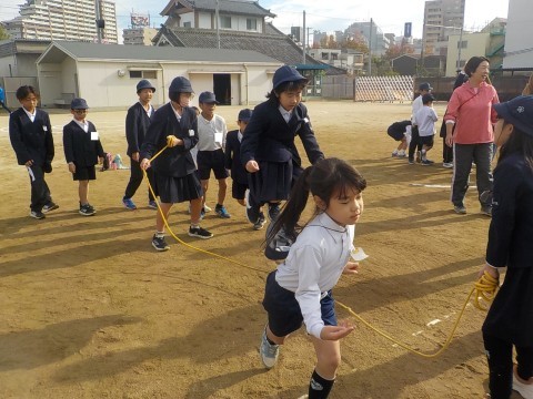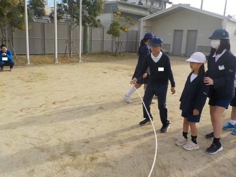12月にある大縄大会にむけて、5年生に大縄をうまく跳ぶコツを教えてもらいました。縄に入るタイミングや、縄から出た後にどこを通るかをやさしく教えてもらいました。練習後には、「うまく跳べるようになった!」「もっと練習したい!」と、嬉しそうにしている様子がたくさん見られました♪