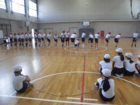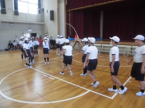 前半は「大繩大会に向けて」各クラスで練習し,見せ合いも行いました。