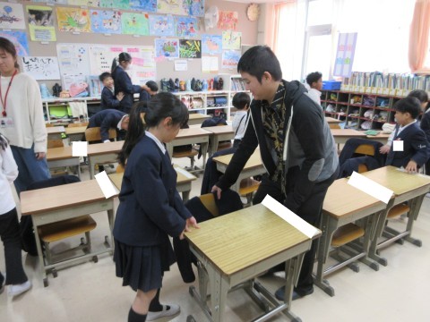 1年生は、民間大使の方と一緒に掃除を行いました。