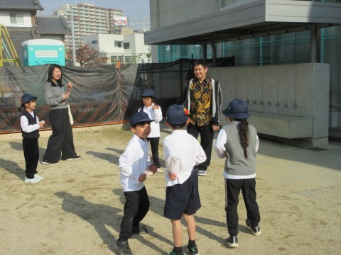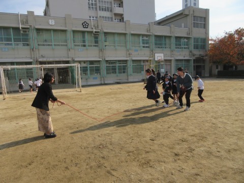 お昼休みは、鬼ごっこや大繩を一緒に楽しみました。