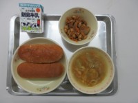 今日の給食は、牛乳・豆とひじきのサラダ・冬野菜カレーライス・ごはんです。