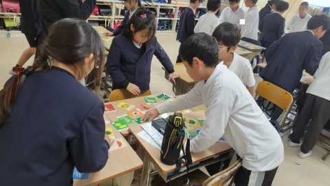 4年生 外国語 公開日 2025/12/03 更新日 2025/12/03 4年生 外国語では、大文字・小文字のアルファベットの学習をしています。今日はアルファベットを答えるクイズをしたり、指示されたアルファベットカードをとる学習ゲームを行いました☆一生懸命に楽しみながら、外国語に親しむことができました♪ +1