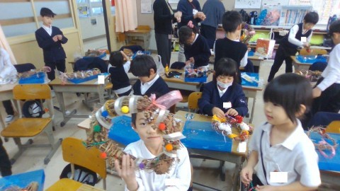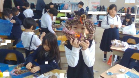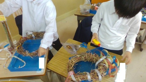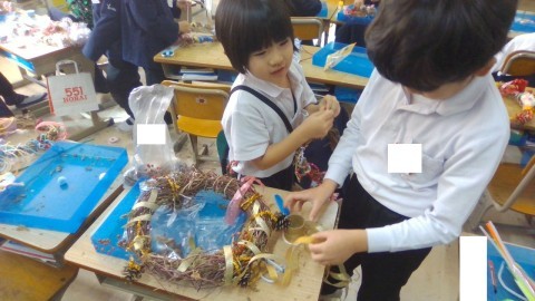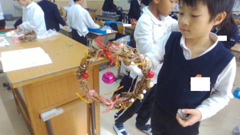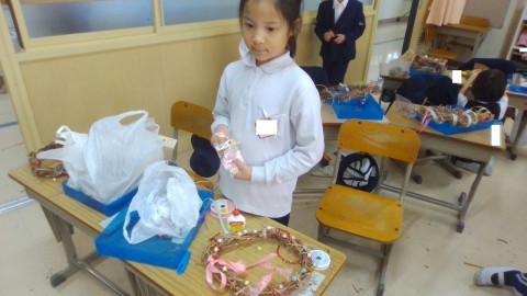 あさがおのつるで作ったリースのかざりづけをしました!!