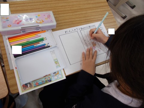 まず、年賀状には「新しい年をお祝いする気持ちを伝える」という目的があることを知り、どんな言葉を書けば相手が喜んでくれるかをみんなで考えました。