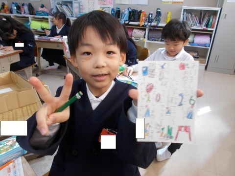 子どもたちは、家族やお世話になった人の顔を思い浮かべながら、一文字ずつていねいに書いていました。かわいい干支の絵を添えている子もいました(^^)