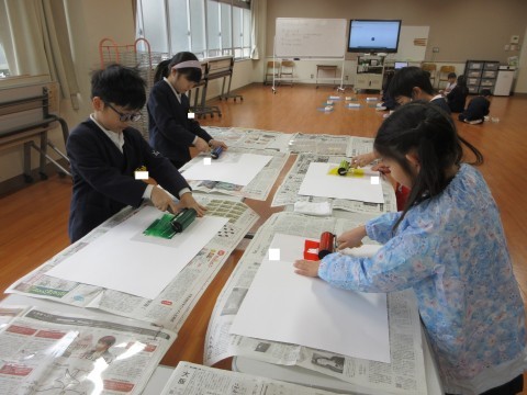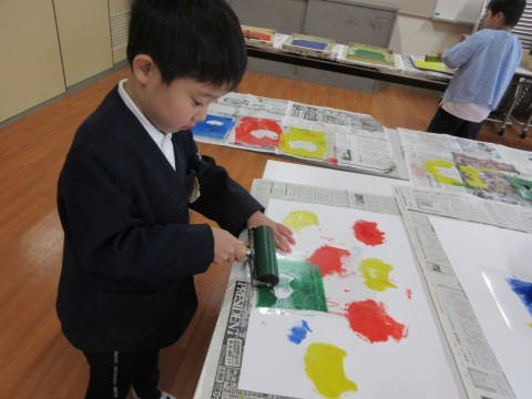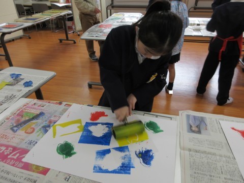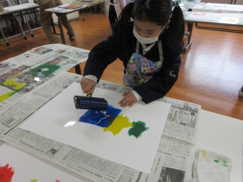 2年生 図工「たくさんうつそう わたしの形」 公開日 2026/01/27 更新日 2026/01/27 2年生 版を写す場所や向きを考えながら、色を選んで形を写しました。重ねたり、向きを反対にしたり、いろいろ考えながら写していました。「うわ~!きれいに写ったよ!」「重ねてみたら、おもしろい形になったよ!」と楽しんでいました。 +2