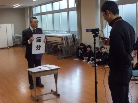 2月3日 全校朝礼 公開日 2026/02/05 更新日 2026/02/04 学校行事 今月も「オンライン朝礼」でした。校長先生からは,「節分」の話がありました。その後,表彰や人権委員会,児童会からのお知らせがありました。 +5 学校行事