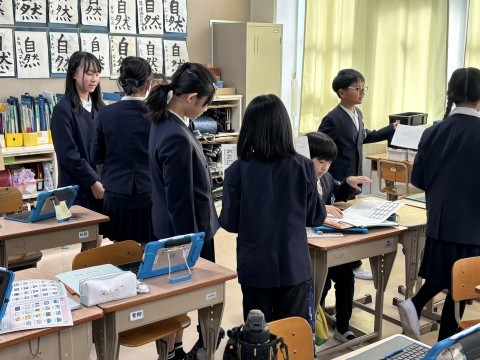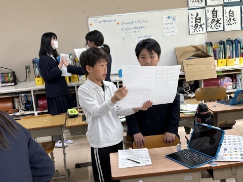自分で町を作り、その紹介文を考えました。できた文章を互いに読み合って確認しています。