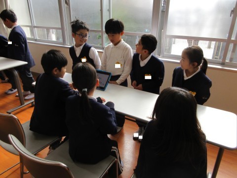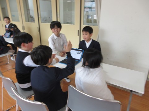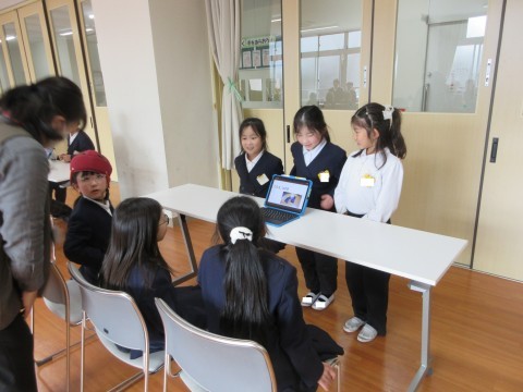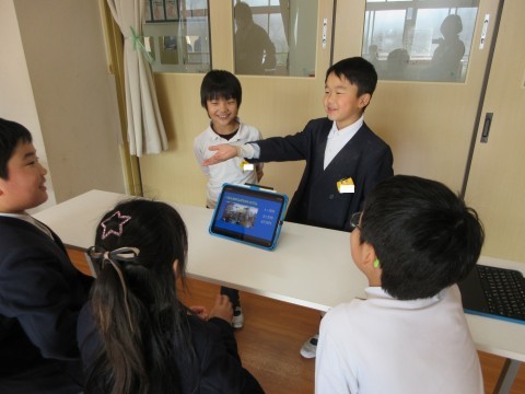 山之口商店街の探検で見つけたすてきを学年で伝え合いました。