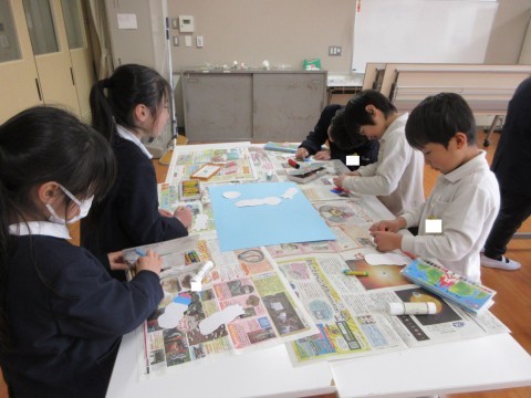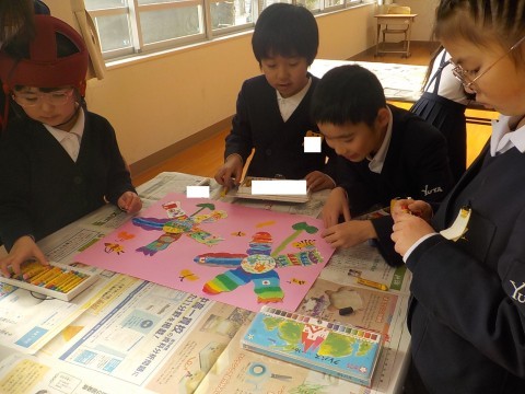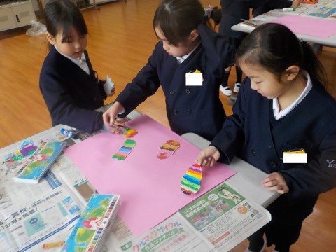 今年度最後の学年図工をしました♪今回は一人ひとり花びらをつくり、グループのみんなで花びらを合わせて「ふしぎな花」を作りました。最後には、それぞれのグループで素敵な花が完成しました♪