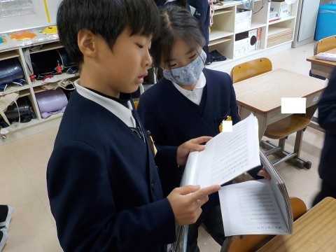 詩の学習をしました。最近「見たこと、かんじたこと」の中で、みんなに伝えたいことを考え詩に表現しました。繰り返しを使うことや、題名をくふうすること、様子が分かるように表現することを意識して書いた詩を、今日はみんなで読み合いました。友だちの詩の中から、お気に入りの詩を見つけている人もいました♪