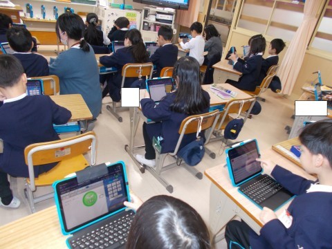 算数の学習では,タブレットのドリルパークというアプリを使って学習内容の定着をはかっています。少しずつタブレットの使い方に慣れてきました(^^)☆