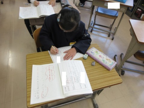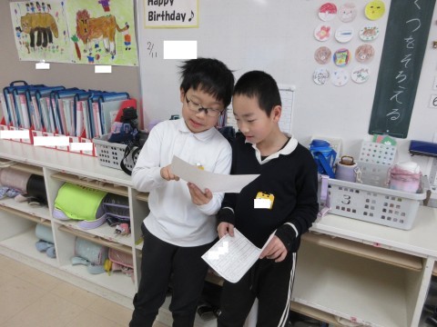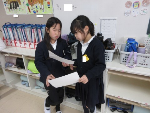 2年生 国語「すてきなことをつたえよう」 公開日 2026/02/19 更新日 2026/02/19 2年生 読む人に思いが伝わるように分かりやすく手紙を書くことをめあてに学習を進めています。今日は、例文を読んで学んだ思いをつたえる手紙の書き方をいかして、手紙の下書きをしました。もう一度例文を見直したり、友だちに読んでもらったりしながら書いていました。 +3