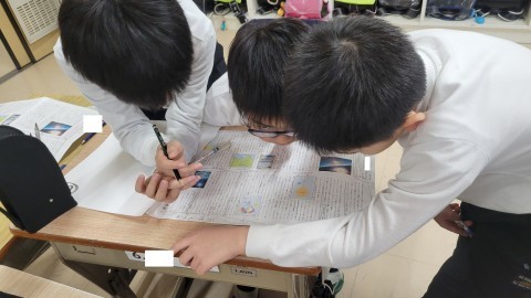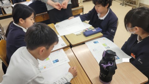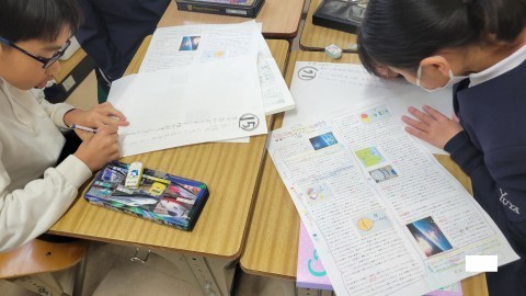 4年生 国語 公開日 2026/02/26 更新日 2026/02/25 4年生 国語では、説明文「風船でうちゅうへ」の文章を読み取る学習をしています。今日はそれぞれの段落について、どのような内容が書かれているか要点をまとめました。班の友だちと話し合いながら、協力して取り組むことができていました♪