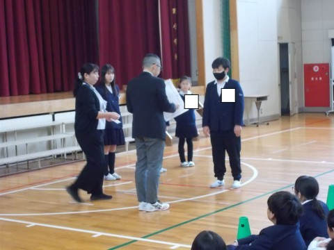 3月4日 全校朝礼 公開日 2026/03/06 更新日 2026/03/05 学校行事 今年度最後の全校朝礼です。表彰があった後,児童会からもお知らせがありました。児童会からは,感謝の言葉もありました。 +3 学校行事