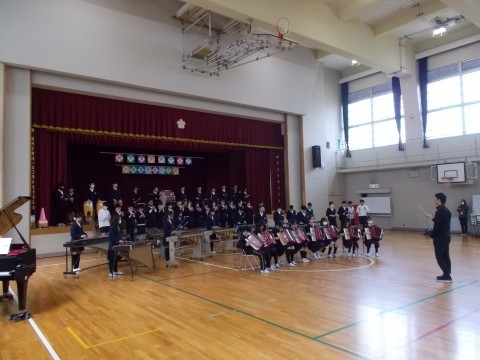 3月6日 6年 6年生を送る会に向けて 公開日 2026/03/08 更新日 2026/03/08 6年生 卒業式練習の後に,午後からの「6年生を送る会」に向けての練習を行いました。1週間以上期間が空いたにもかかわらず,一つにまとまった素敵な合奏でした! 6年生