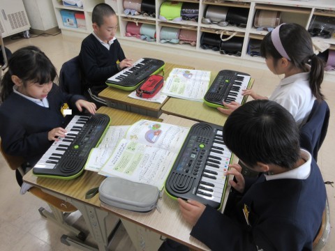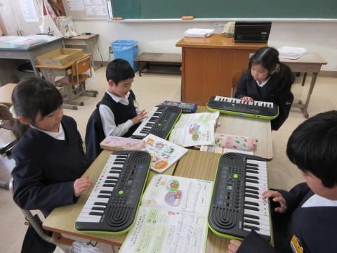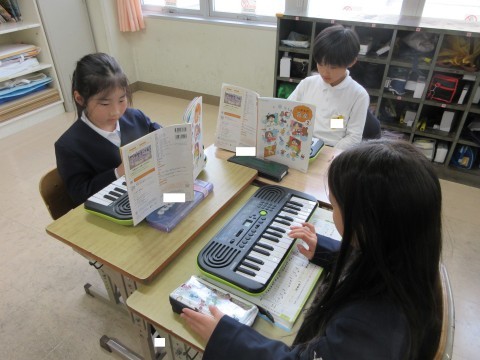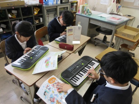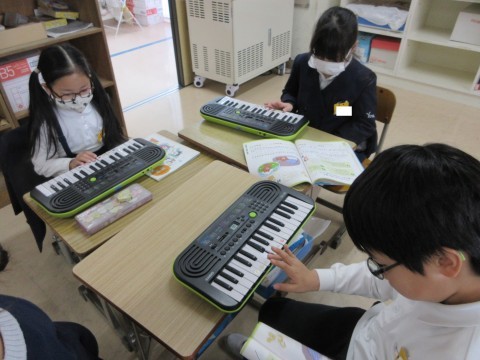 2年生 音楽「みんなであわせて楽しもう」 公開日 2026/03/09 更新日 2026/03/09 2年生 「小ぐまの二月」を3つのパートに分かれて、キーボードで演奏します。2つめのパートの練習をしたあと、班で、2つのパートに分かれて演奏してみました。次回は、3つめのパートの練習もする予定です。音をよく聞き合って演奏していきましょう! +3