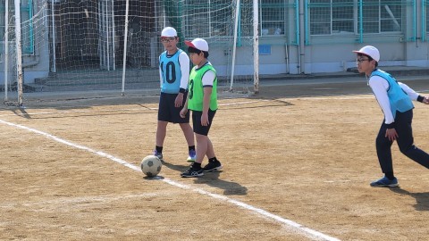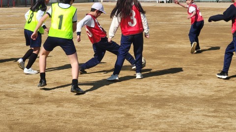 4年生 体育 公開日 2026/03/12 更新日 2026/03/11 4年生 体育ではラインサッカーの学習です!今日は体操やドリルゲームをした後、チームでスペースをいかすための作戦を考え、ゲームを行いました⚽得点をとるために、チームで声をかけながら、協力してゲームを楽しむことができました⚽~