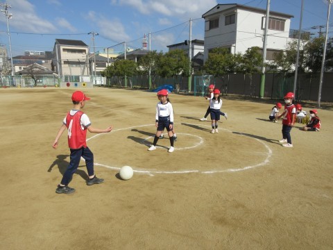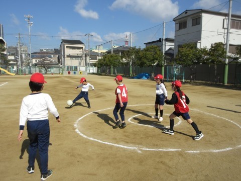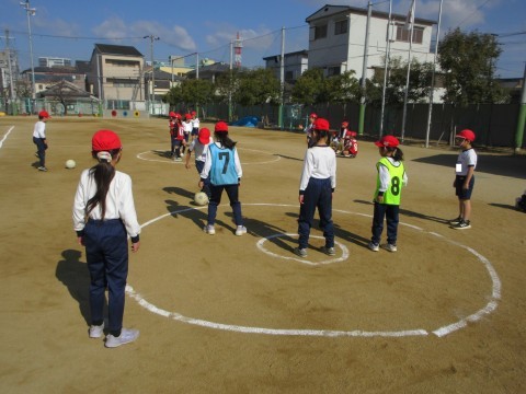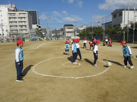 2年生 体育「キックサークルシュートゲーム」 公開日 2026/03/16 更新日 2026/03/16 2年生 運動場の体育では、キックサークルシュートゲームに取り組んでいます。すきまを作るために、すばやくパスを回すことをがんばりました。 +2