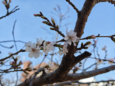桜の木を見ると,少しずつ花が増えてきています。