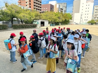 今日は3年生の校外学習です。 いいお天気になりました。そろそろ出発します。