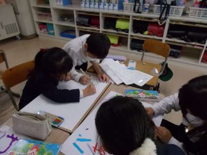 2年生 生活「作って ためして」 公開日 2023/10/30 更新日 2023/10/30 2年生 今日は、お店に来てくれたお客さんに、遊び方をどう説明するかを考えました。 説明するときに使うために、考えたことを画用紙にも書きました。
