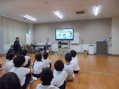 発育測定の前には、保健の先生から、保健室についてのお話をしてもらいました。