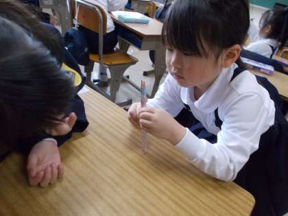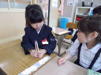 今まで比べたことがあるものをみんなで話し合い、お友だちと鉛筆の長さを比べてみました。