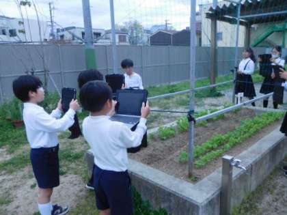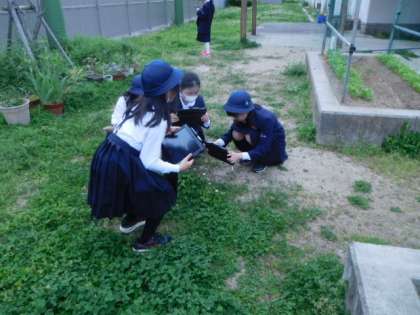 4年生 理科「春の生き物」 公開日 2024/04/16 更新日 2024/04/16 4年生 春の生き物の観察をしました。 見つけた生き物を、タブレットのカメラで撮って記録しました。 モンシロチョウや桜、シロツメクサなどを見つけました。