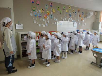 1年生 初めての給食(1) 公開日 2024/04/16 更新日 2024/04/16 1年生 今日から給食がスタートしました! しっかり手を洗って、給食の準備を始めます。 給食当番さん、とっても上手にならべていますね。
