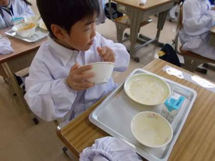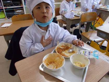 頑張って準備したあとの給食は、格別です♪ みんなパクパク食べていましたよ。