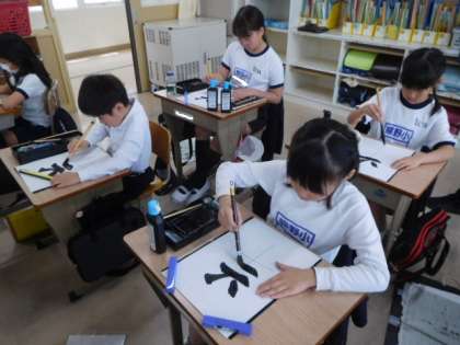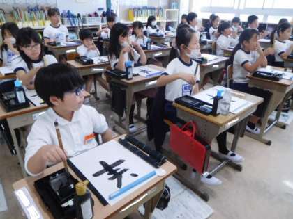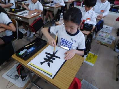 4年生 書写 公開日 2024/04/17 更新日 2024/04/17 4年生 4年生1回目の書写の授業でした。 筆の持ち方などを確認して、「羊」を書きました。 ポイントを意識して、一筆ずつていねいに書いていました。