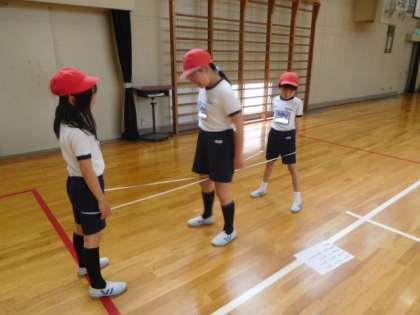 4年生 体育「ゴム跳び」 公開日 2024/04/18 更新日 2024/04/18 4年生 「ゴム跳び」に取り組みました。 今日は、グーパー跳びをしました。 「わーおしい!」「やった!できた!」など、楽しく跳んでいました。 できた人は、高さを高くして、レベルアップさせていました。