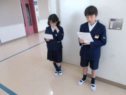 4月19日 児童会〜対面式に向けて〜 公開日 2024/04/19 更新日 2024/04/19 学校行事 来週月曜日の「対面式」に向けて,朝や20分休みに,それぞれのセリフや動きを確認しました。 1年生をみんなであたたかく迎えましょう!