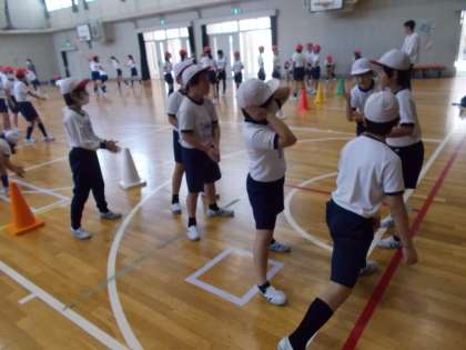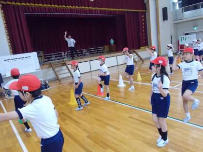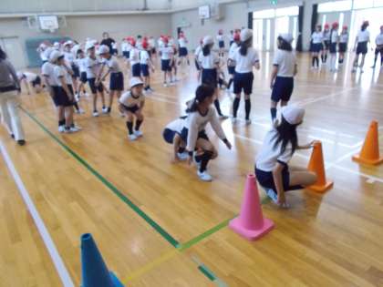 昨日に続いて,2時間目に体育館で体育参観に向けての練習を行いました。