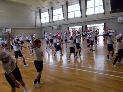 新しい振り付けも確認しました。 どちらの学年も楽しみながら練習に励んでいました!